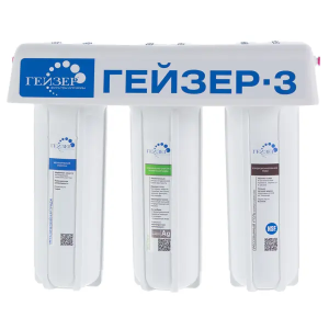 Система трёхступенчатая Гейзер 3-ИВЖ Люкс — экономичный вариант для доочистки жесткой водопроводной воды (средний уровень минерализации). Характеризуется оптимальным соотношением цены и качества. Прочность корпуса подтверждена испытанием на давление 25 атм. Комплектуется краном для чистой воды.