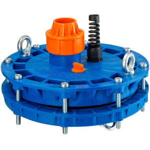 Основание представляет собой пластмассовую деталь, на которой установлены: цанговый зажим для напорной полиэтиленовой трубы; гермоввод; два верхних рым-болта; рым-гайка с карабином для крепления троса и резьбовая заглушка для закрепления шнура от сливного клапана или установки дополнительного оборудования.