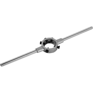 Плашкодержатель «Сибртех» используется при нарезании наружной резьбы на цилиндрических изделиях, изготовленных из металла. Служит для фиксации и вращения плашки, имеющей круглую форму. Инструмент изготовлен из высококачественной стали. Производится в Китае.