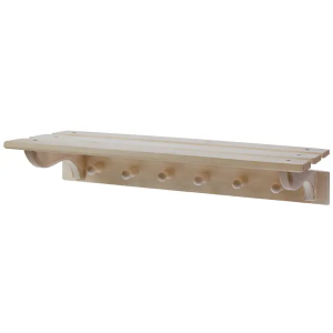 Полка с крючками — функциональный аксессуар для ванной, сауны или бани. Предназначена для удобного хранения банных принадлежностей. На 6 крючках можно расположить полотенца, халаты, мочалки, на верхней плоскости полки — мыло, шампуни и нужные мелочи. Изделие из натуральной древесины хорошо впишется в интерьер с деревянной обшивкой стен.