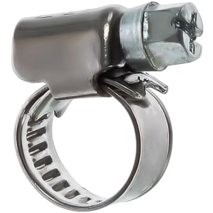 Хомут червячный W2 диаметром 8–12 мм из нержавеющей стали в упаковках по 2 шт. необходим для фиксации гибких шлангов и труб на штуцерах (например, на насосах в системе водоснабжения, или на компрессорах).