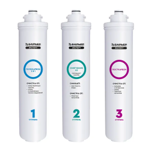 Комплект картриджей для фильтра Барьер Эксперт Смягчение Плюс для жесткой воды 3 ступени быстросъемный