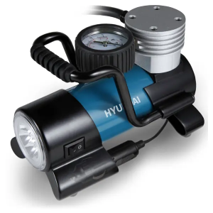 Компрессор автомобильный Hyundai HY 1645 подключается к автомобильной сети напряжением 12 В через разъем прикуривателя. Основное назначение устройства — подкачка автомобильных шин. Благодаря комплекту универсальных насадок может использоваться для накачивания бассейнов, матрацев, мячей и других надувных изделий. Поршневой компрессор создает воздушный поток интенсивностью 45 л/мин и рассчитан на непрерывную работу в течение 30 мин.