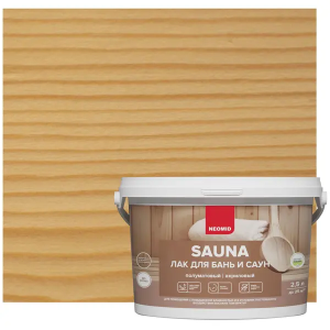 Лак для бань и саун Neomid обеспечит надежную защиту деревянных поверхностей в самых сложных условиях эксплуатации. В состав лака, который мы предлагаем, входят компоненты против вредителей, болезней, плесени и грибков. Акриловая основа продукта обеспечивает ему быстрое высыхание и образует высокопрочное полуматовое покрытие. Здесь вы можете купить лак в экономной таре емкостью 2,5 л. При увеличении объема в 2,5 раза цена упаковки в сравнении с литровой емкостью становится больше только вдвое.