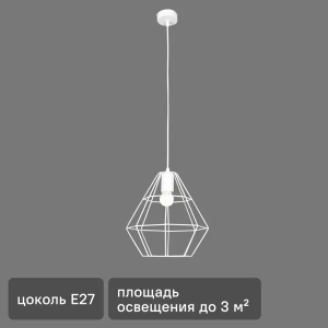Максимальная площадь освещения составляет 3 м². Свечение вырабатывает 1 лампа мощностью 60 Вт. Подвес крепится к потолку с помощью планки. Для изготовления основания используется металл. Бра в этой серии нет — поэтому, если возникнет необходимость дополнить светильник, его придется подбирать из другой коллекции. Обратите внимание: лампочки не входят в комплект, их необходимо приобрести отдельно. Сделать это можно в нашем интернет-магазине. Тип цоколя лампы: Е27.