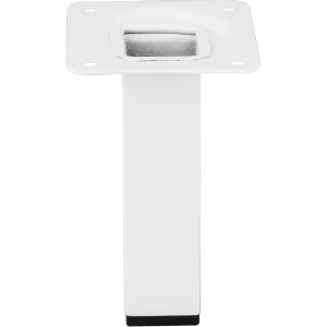 Ножка квадратная из прочной стали выдерживает нагрузку до 50 кг. Цвет — белый. Предусмотрена возможность покраски. Модель с пластиной размером 60 мм крепится путём привинчивания. Высота изделия составляет 10 см, диаметр — 25 мм. Производитель предоставляет гарантию сроком 1 год.