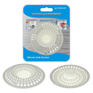 Ситечко выполнено из силикона, за счет чего в раковине смотрится эстетично и гармонично. Диаметр ситечка ― 12 см.