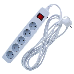 Материал корпуса сетевого фильтра — долговечный поликарбонат. Сохранит первоначальный вид спустя годы использования. Оборудован кабелем подключения длиной 3 м и сечением 0,75 мм. Белый цвет удачно впишется в любой интерьер.