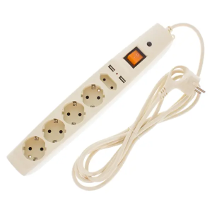 Материал корпуса сетевого фильтра — долговечный поликарбонат. Сохранит первоначальный вид спустя годы использования. Оборудован кабелем подключения длиной 3 м и сечением 0,75 мм. Бежевый цвет удачно впишется в любой интерьер.