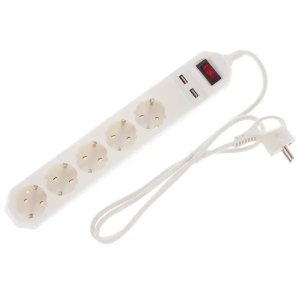 Материал корпуса сетевого фильтра — долговечный полипропилен. Сохранит первоначальный вид спустя годы использования. Оборудован кабелем подключения длиной 1,5 м и сечением 0,75 мм. Белый цвет удачно впишется в любой интерьер.