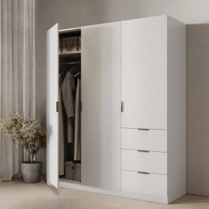 Шкаф распашной Турин подойдет для гостиной, спальни, офиса или гардеробной. Вместительный шкаф с большим количеством полок и ящиков позволит свободно рассортировать и разложить одежду, аксессуары и текстиль. Глубина корпуса — 60 см. Изготовлен из прочной плиты ЛДСП, сверху покрыт гладкой финиш-пленкой белого цвета. Гарантия производителя — 2 года. В комплекте: