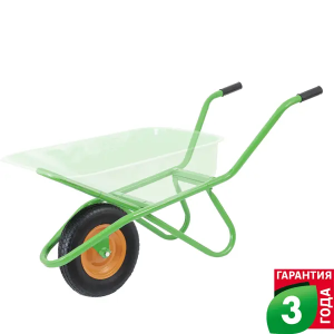 Прочная металлическая рама из труб круглого сечения обеспечивает эргономичность работы, плавный ход и устойчивость тачки во время стоянки. Две металлические ручки оснащены прорезиненными накладками с углублениями для пальцев обеспечивающими удобный хват.