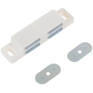 Накладная магнитная защелка предназначена для установки на дверцы мебели различного типа. Основными достоинствами простого, но надежного устройства являются удобство при установке и наличие мощного магнита, который обеспечит плавное и бесшумное закрывание. Благодаря корпусу из прочного пластика белого цвета данная модель прекрасно подойдет к светлой мебели. В комплекте присутствуют металлические саморезы. Купить защелку по привлекательной цене вы можете в нашем магазине.