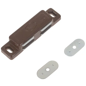 Защелка Amig – фурнитура для мебели от испанского производителя. Состоит из 2 частей: пластикового корпуса с магнитами и металлической пластины. Деталь прикручивается к шкафу или гардеробу с помощью саморезов и обеспечивает плотное закрывание дверей.